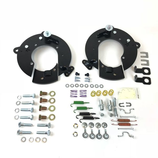 Trail-Gear rear disc brake conversion kits allow you to install disc calipers and rotors in place of those difficult to maintain drums. Rear Disc Conversion Brackets Backing Plates. 2007 Toyota FJ Cruiser rear components.